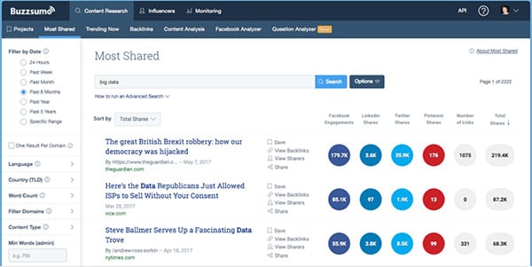 الان نستطيع ان نقول من افضل أدوات ادارة مواقع التواصل الاجتماعي التي تستطيع من خلالها الحصول علي افكار لمحتوي تسويقي قوي وجذاب هي أداة Buzzsumo.