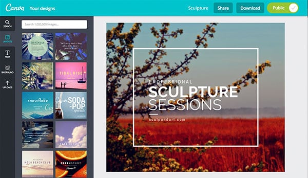 هناك إصدار للمحترفين مدفوع الأجر ، ولكن النسخة المجانية من الموقع الإلكتروني توفر بالفعل مئات التخطيطات والصور الفوتوغرافية والرسوم التوضيحية وأنواع الخطوط المصممة بطريقة احترافية ، بحيث يمكنك إنشاء صور وسائط اجتماعية جذابة دون الحاجة إلى مهارات تصميم رسوم سابقة